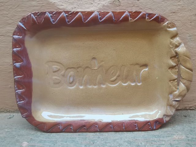 Plat rectangle mono-anse beige